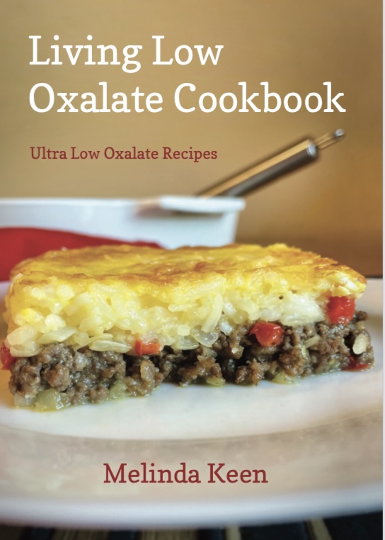 “Living Low Oxalate Cookbook” is Melinda’s newest release which features low oxalate recipes for the low oxalate and the ultra low oxalate dieter. This cookbook includes oxalate content counts for each recipe and reliable oxalate food content lists.